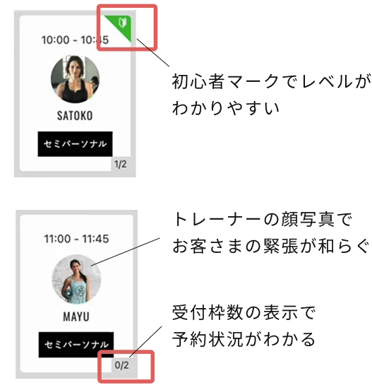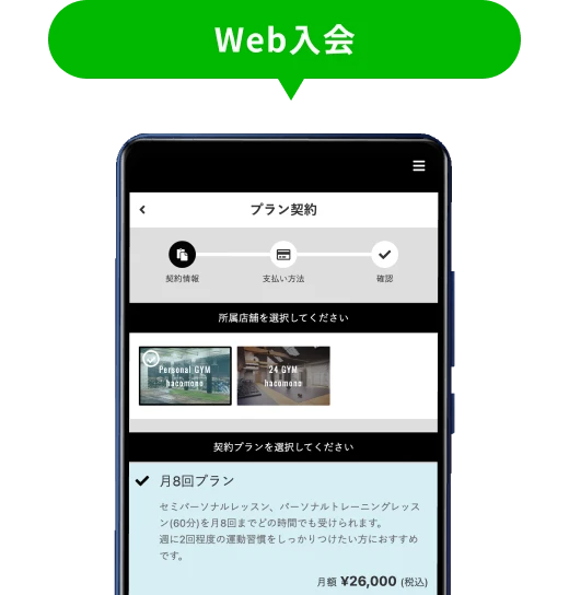 体験予約も通常予約もオンラインで完結します。会員様の個人情報の入力~体験料の決済まで完了するので、店頭での二重入力も会計手続きも必要ありません。